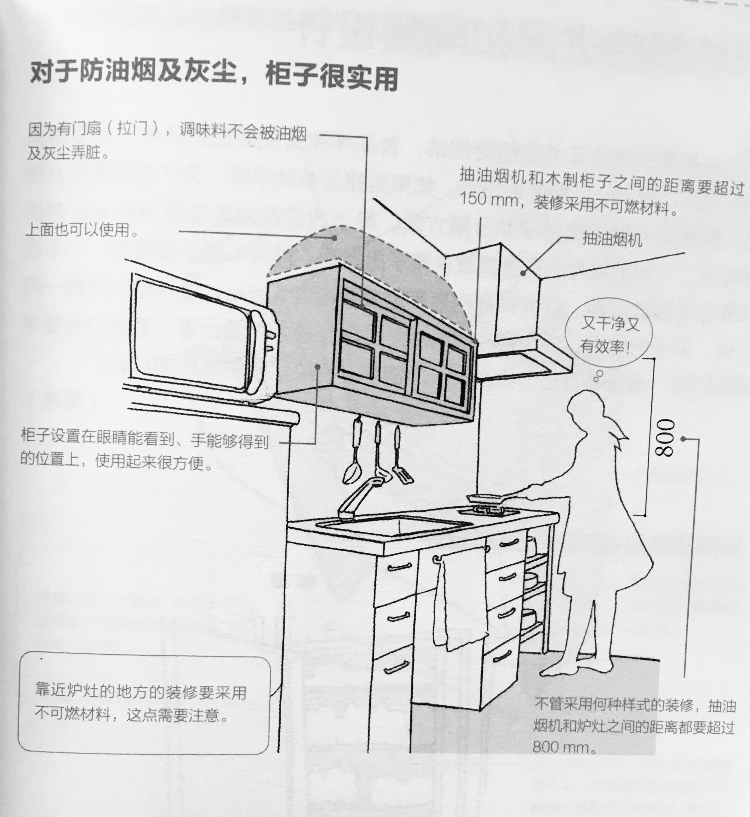 2、橱柜的进深最好保持在150-300mm,避免进深太深,导致食物、餐具积压后长期不用,尤其是食物,看不到就记不起要拿来用,然后突然有一天发现藏在橱柜里的食物时,已经过期了。