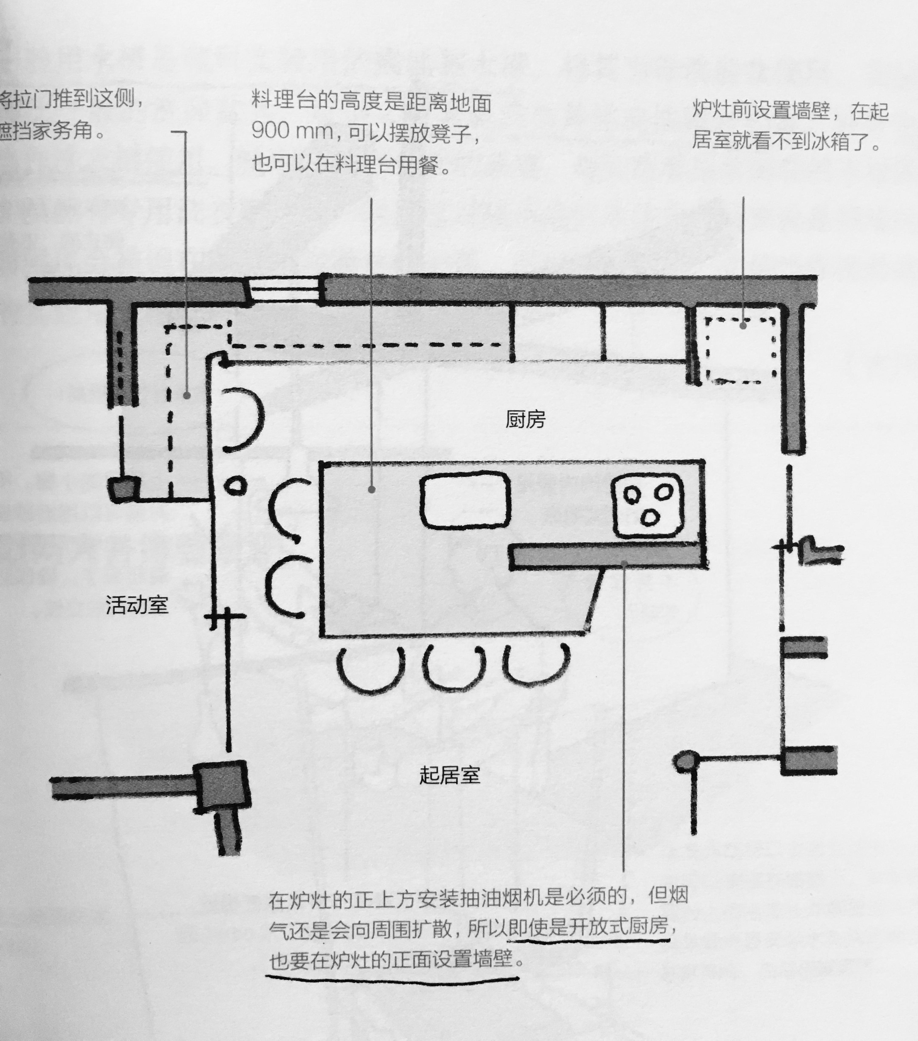 5、开放式的厨房烟灶的位置一定要包一面墙,来阻挡炒菜是四处飞溅的油渍。即使使用再高档的抽油烟机,也没法百分百的保证炒菜时油渍的侵袭,所以用单面墙隔离是很有必要的。同时这面墙也能遮挡一些不必要的视线。