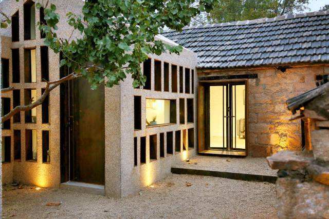 4、玄关地面最好和室内地板分开铺设,可以采用水刷石装修地面。