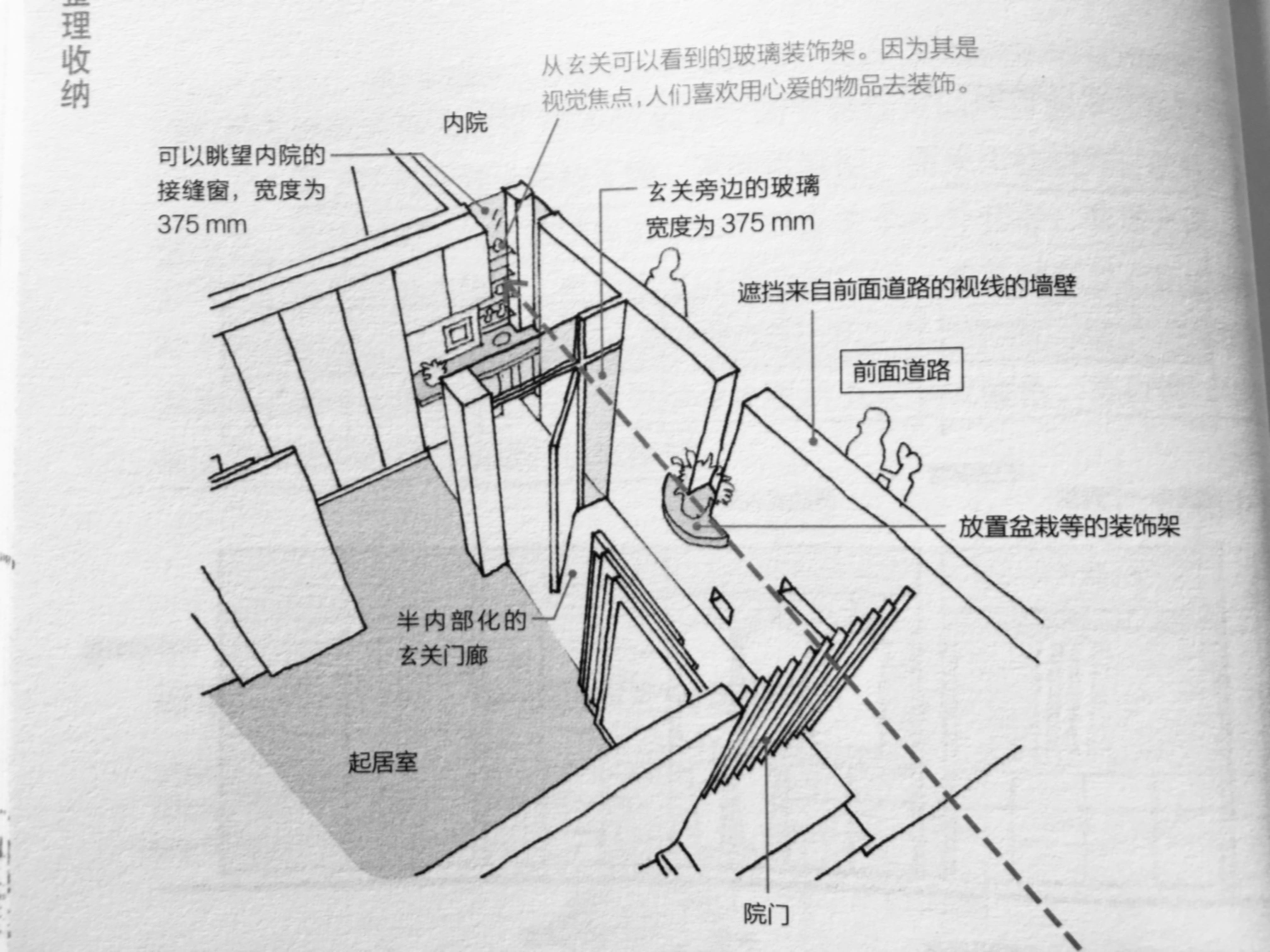 2、玄关与墙体中间可以做局部玻璃封闭处理,这样整个家里的视线无阻挡,就变开阔了。