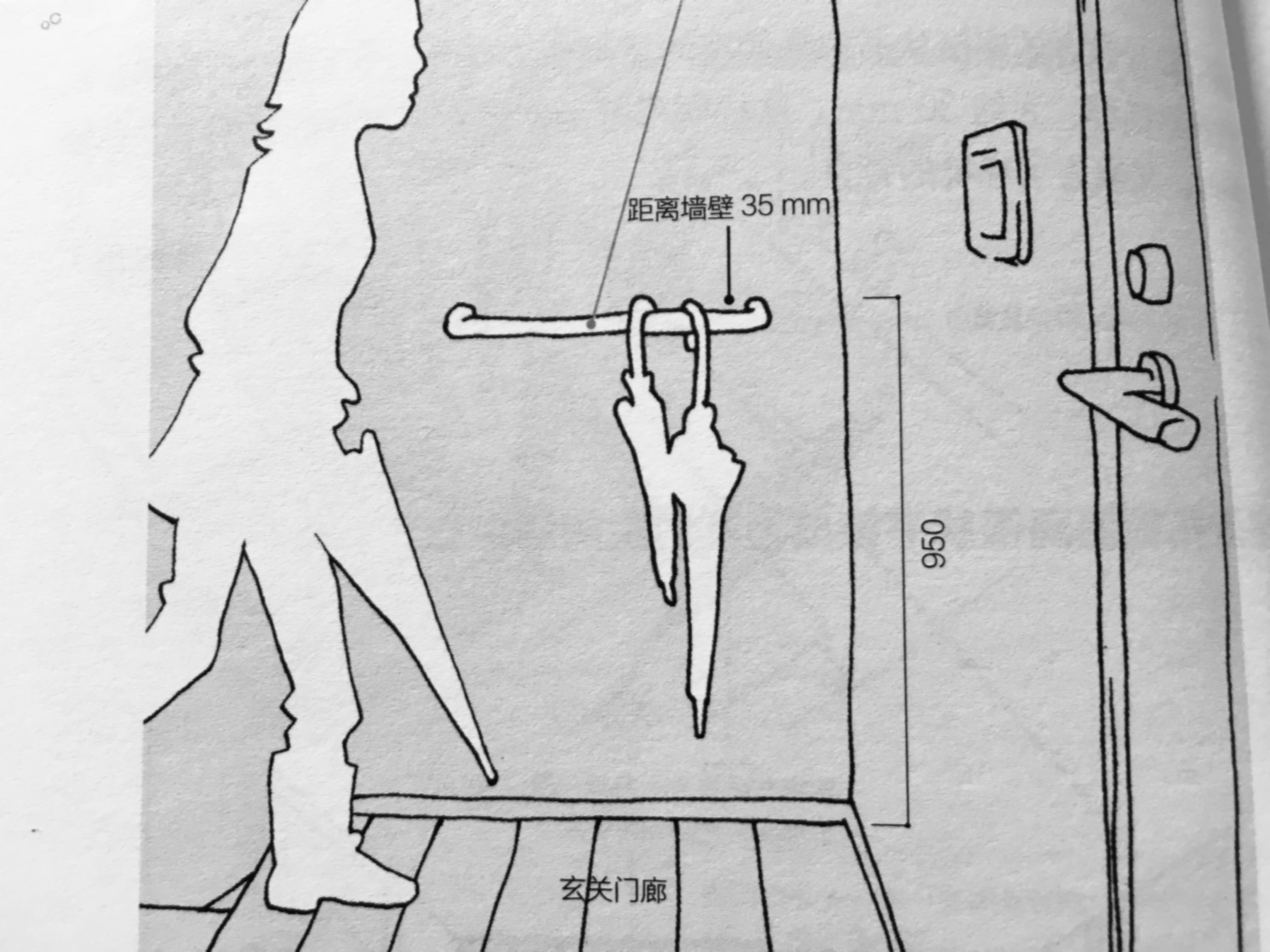 3、玄关门廊的墙壁上可设置一根伞挂,长0.6米,直径34mm的不锈钢管。