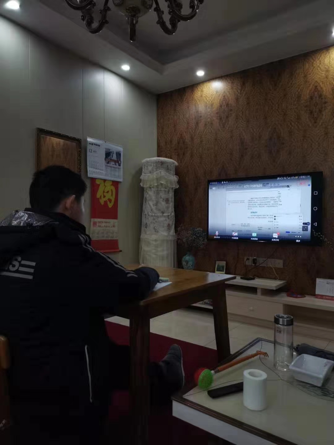 我们家刚好就有一位高二的学生和一位小学老师。由于疫情隔离在爸妈家,没有准备的很充分。原有的电子设备没有带过来。为了今天的直播课程。孩子和他爸爸昨天在家里,想尽一切办法把能用的上电子设备都用上了,有的没有耳麦就用另一部手机做耳麦,这样捣鼓捣鼓,晚上终于可以进行网络直播或是收听课程。