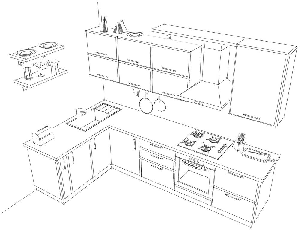 拉篮区建议设置在灶台之下,这样可以有效利用灶台下部分的空白区域。