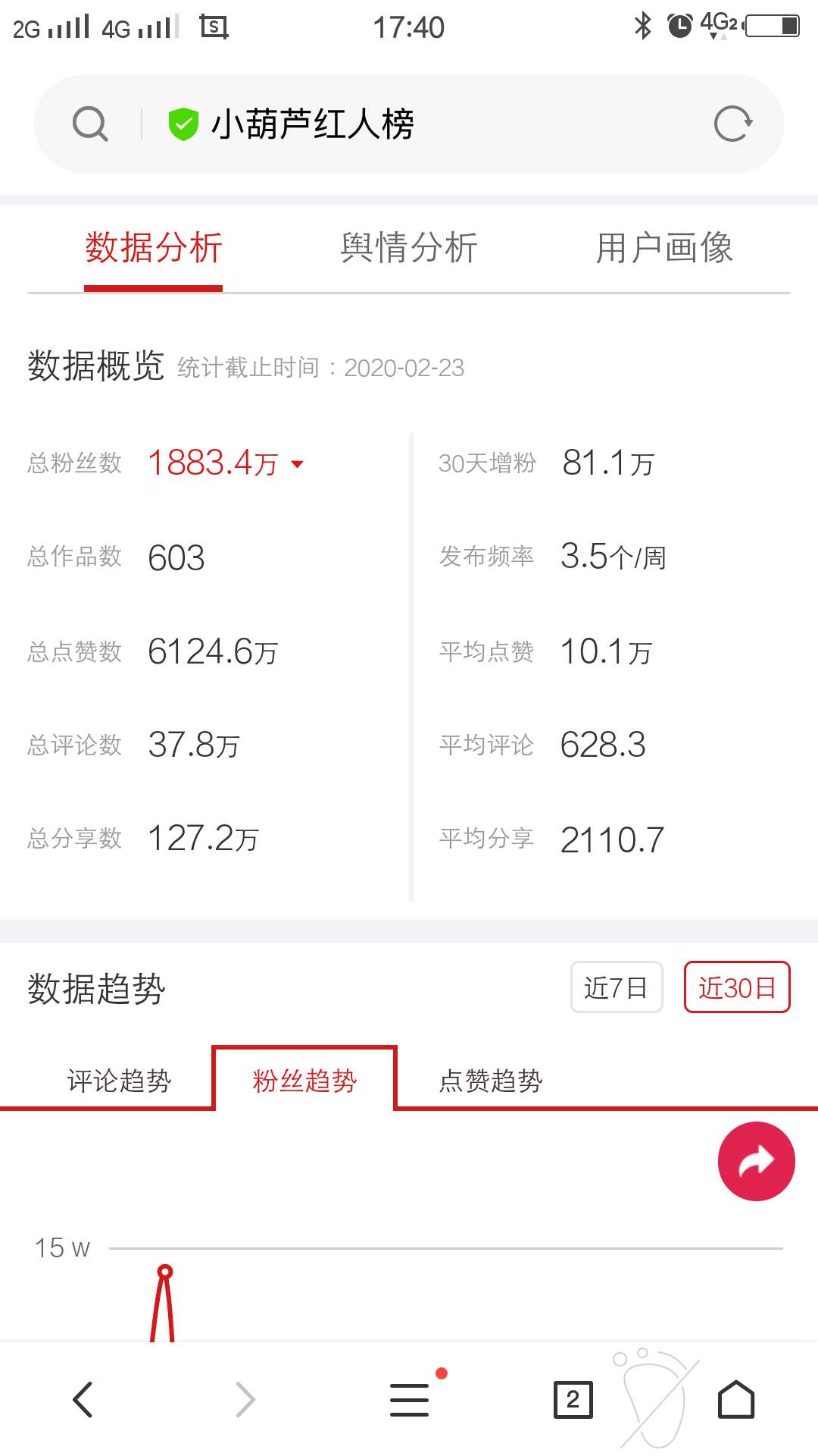我们可以看到它的一些基本的数据,近30天的增粉是200多万。然后作品发布的频率基本上是一天一个。还有他的总评论数400多万,总分享数200多万。他的第1条视频发布于2019年2月23号,是关于动漫火影忍者。总结一下这个账号的一些特点。