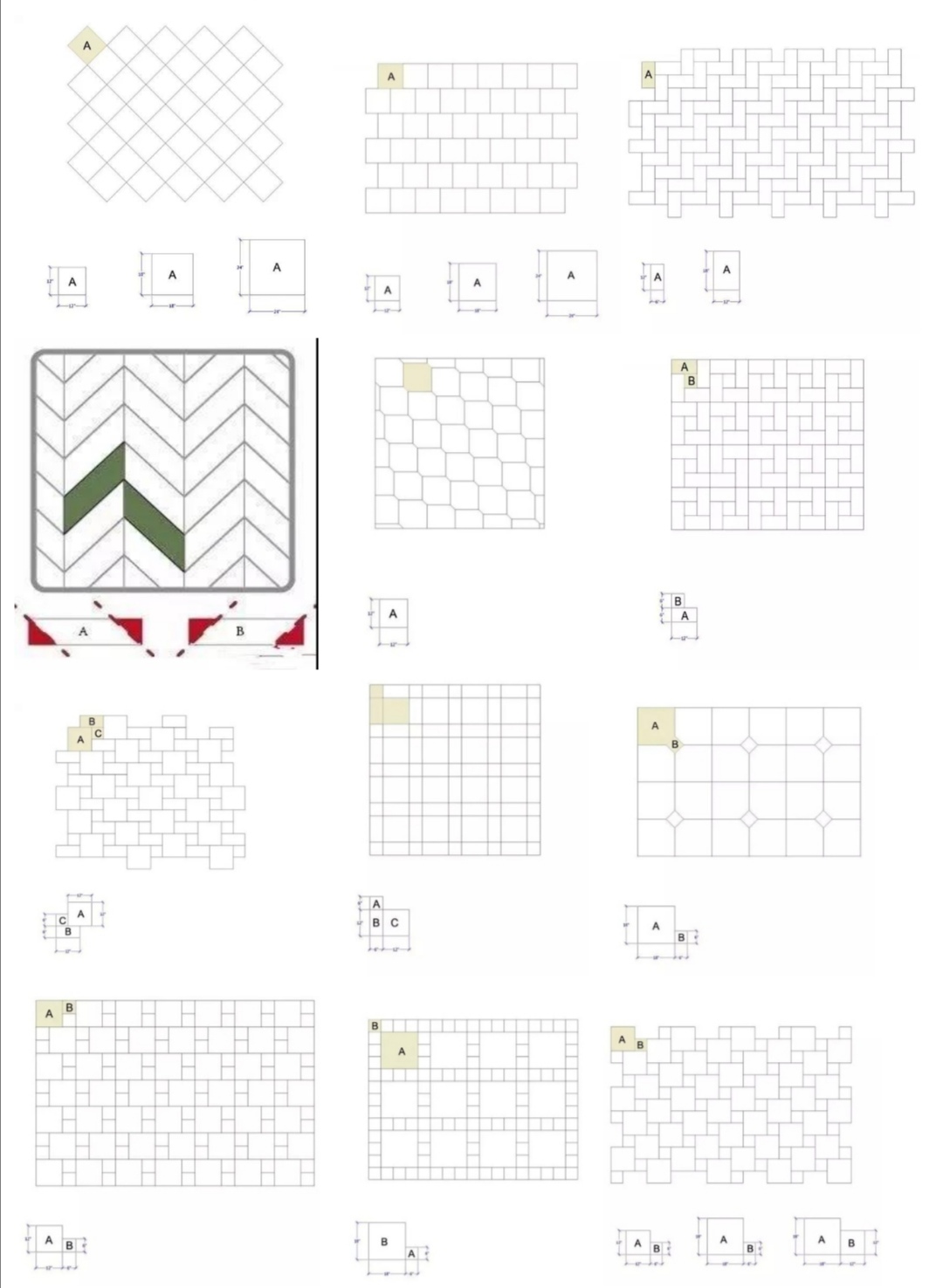 以上12种铺贴方法,可适用于大多数空间,有些方法对于师傅的要求较高,需要提前和师傅沟通好,材料也可多准备一些。