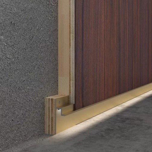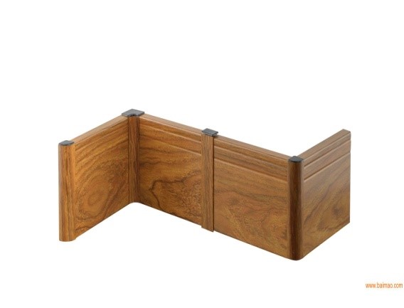 铝合金踢脚线,目前客户选购不多,普及性不高。颜色除金属本色外,还有很多包覆木纹