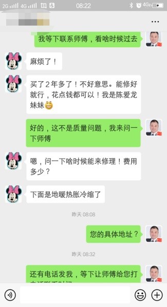 将维修信息发给我们嘉中美荆州全屋定制专业的售后师傅,和业主沟通后,当天下午就上门将地板的收缩缝隙修不好了。整个售后反馈时间,没有超过10小时,现场维修30分钟解决。