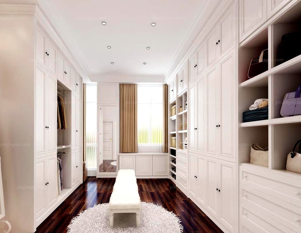 如果准备单独设计一个房间的衣帽间,还可以加上一条软凳,试鞋子的时候总不能坐在地上吧。一定要把衣帽间的窗户留出来,加一个吸顶灯就可以了。