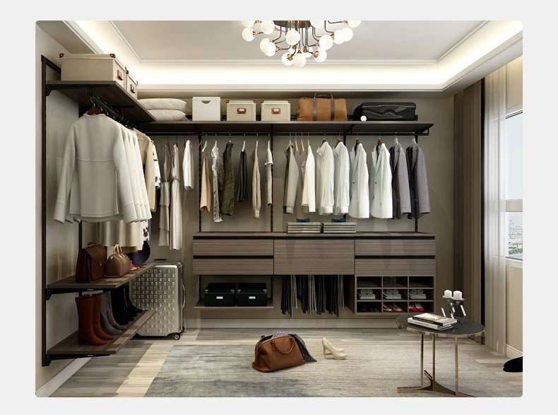 如果看过欧美电影里卧室和衣帽间的镜头,你就会发现,这样的设计在国外已经流行不短时间了。国外对环保的要求比较高,木材加工成本也不低,所以怎么经济实惠怎么来。其实这样的设计就是参照服装店的陈列方式,还有医院里放药物的架子也是这种款式。