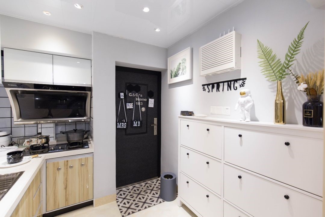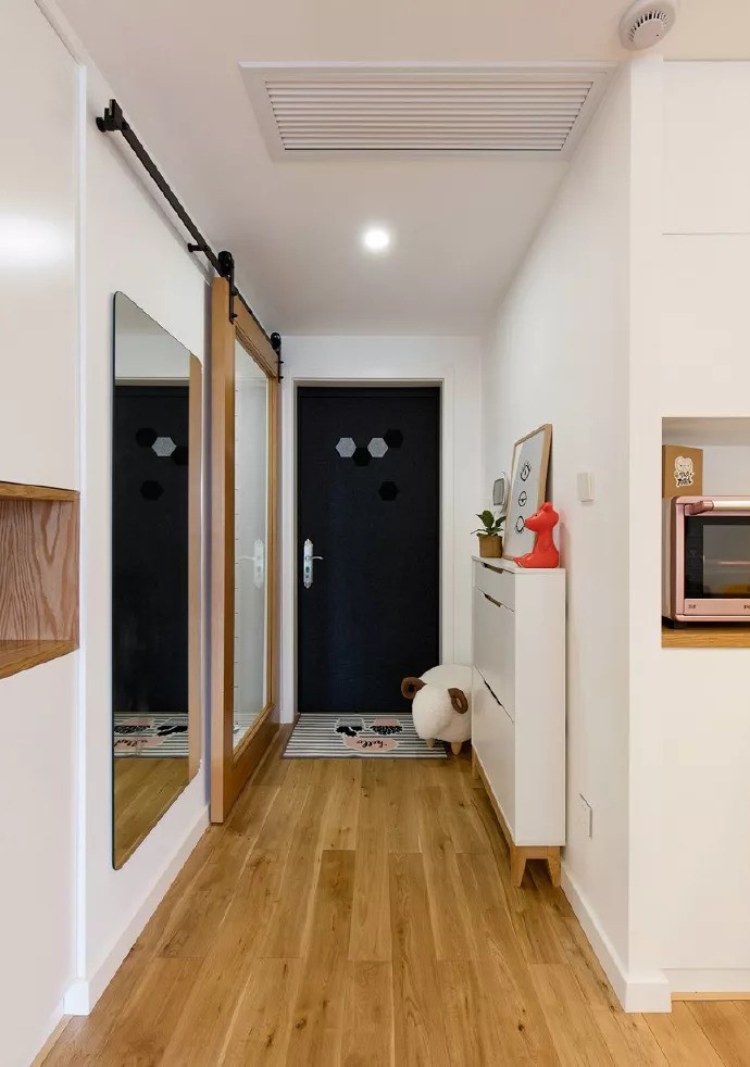现如今的商品房因为寸土寸金,很多空间都没有办法达到业主心里的需求。尤其是进门的过道空间,你会发现要想定制一个既好看又实用的鞋柜真的比较难,要么宽度不够,要么深度不够。有的墙面上布满了电箱和电线开关。