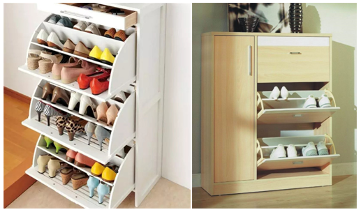 图片上的设计就是浅鞋柜的神器--翻斗鞋架。