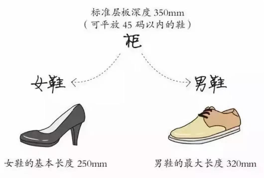 这样的全屋定制设计鞋柜设计方法会减少层板的数量,加大鞋柜的深度。一般标准的鞋长度男鞋和女鞋有所不同。