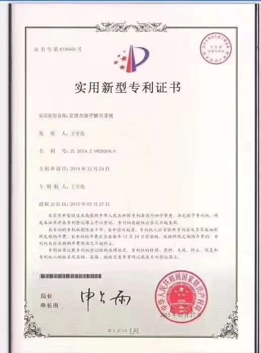 他是一个非常有主见的人,他对装修过后,室内的甲醛含量非常介意,而我们荆州全屋定制嘉中美的这个石膏板由竹炭纤维组成,可以净化室内甲醛的,我们有检测报告和专利证书,所以自信他的选择是正确的。