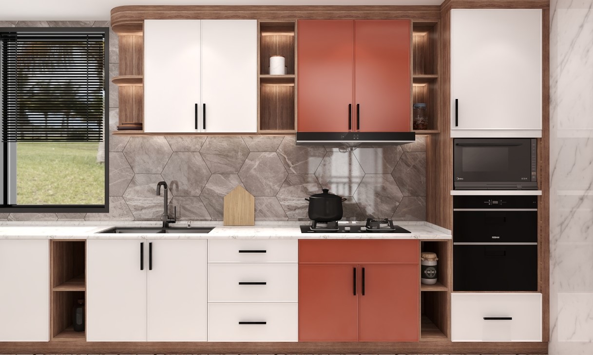 做饭本来是一件枯燥的事,橘色让厨房变的开心,那么做出的菜也会感染主人的心情。老公炒菜,老婆准备食材,夫妻搭配,干活不累。