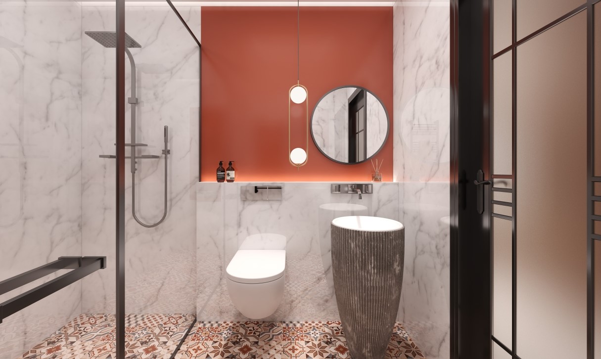 卫生间的设计也让人眼前一亮,橘色的马桶盖和洗漱台,我可以在卫生间呆上一个小时。